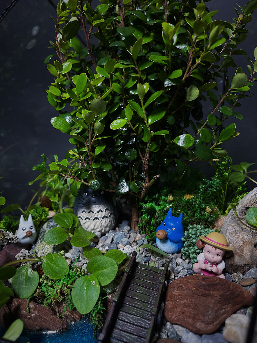 - Используйте камни, кору, мох для имитации природных элементов.