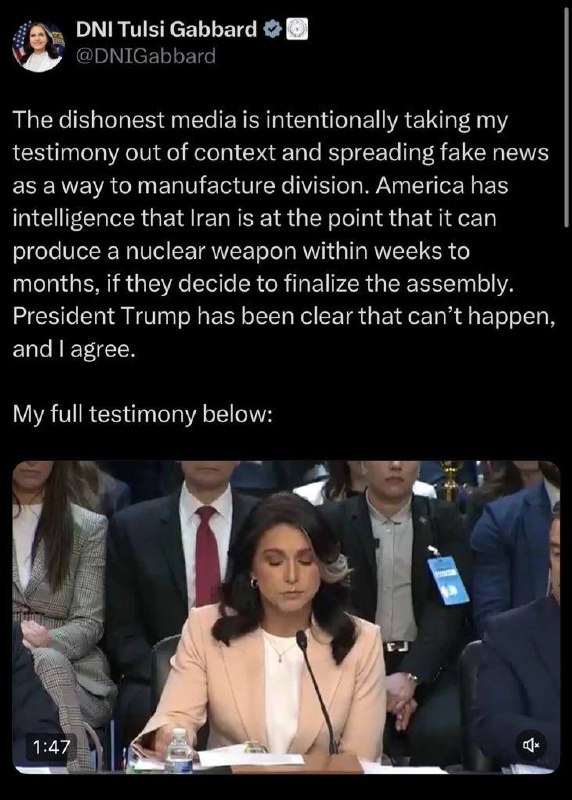 DNI Gabbard says she ‘AGREES’ with Trump on Iran