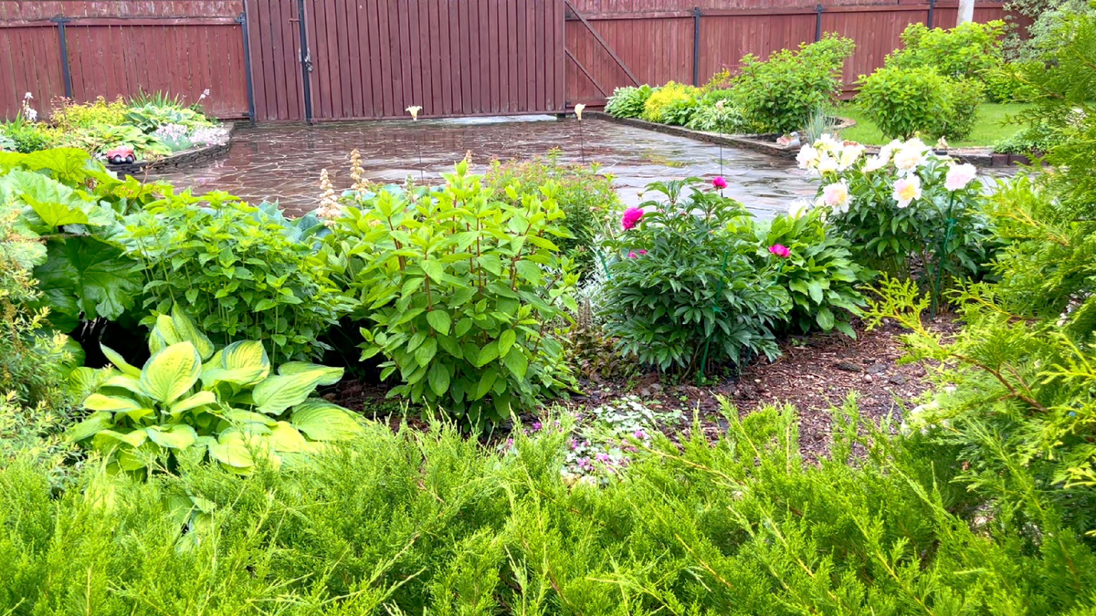 Также мои любимые спиреи и хосты, пионы, которым в этом году не получается порадовать нас в полной мере красивым и ароматным цветением из-за дождей.