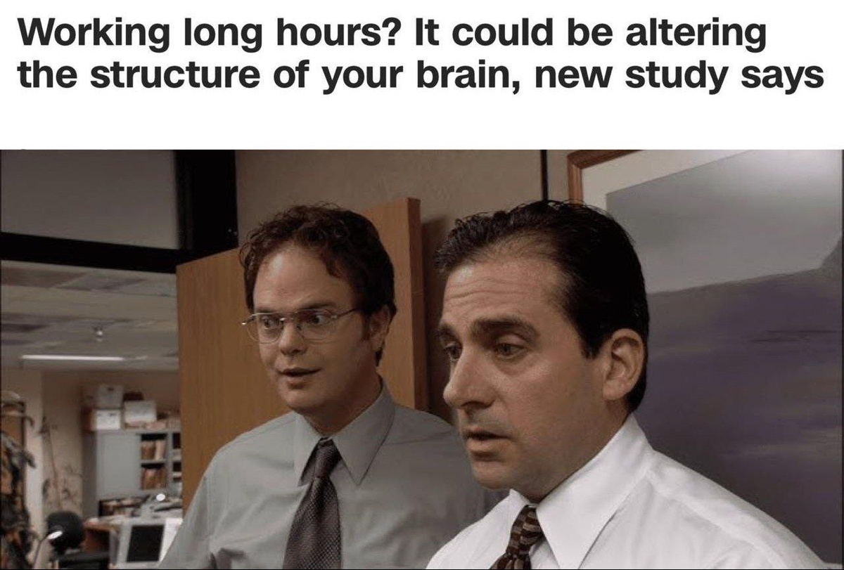 + Переработки меняют структуру мозга — работа 52+ часов в неделю приводит к туману в голове, эмоциональным срывам и снижению когнитивных