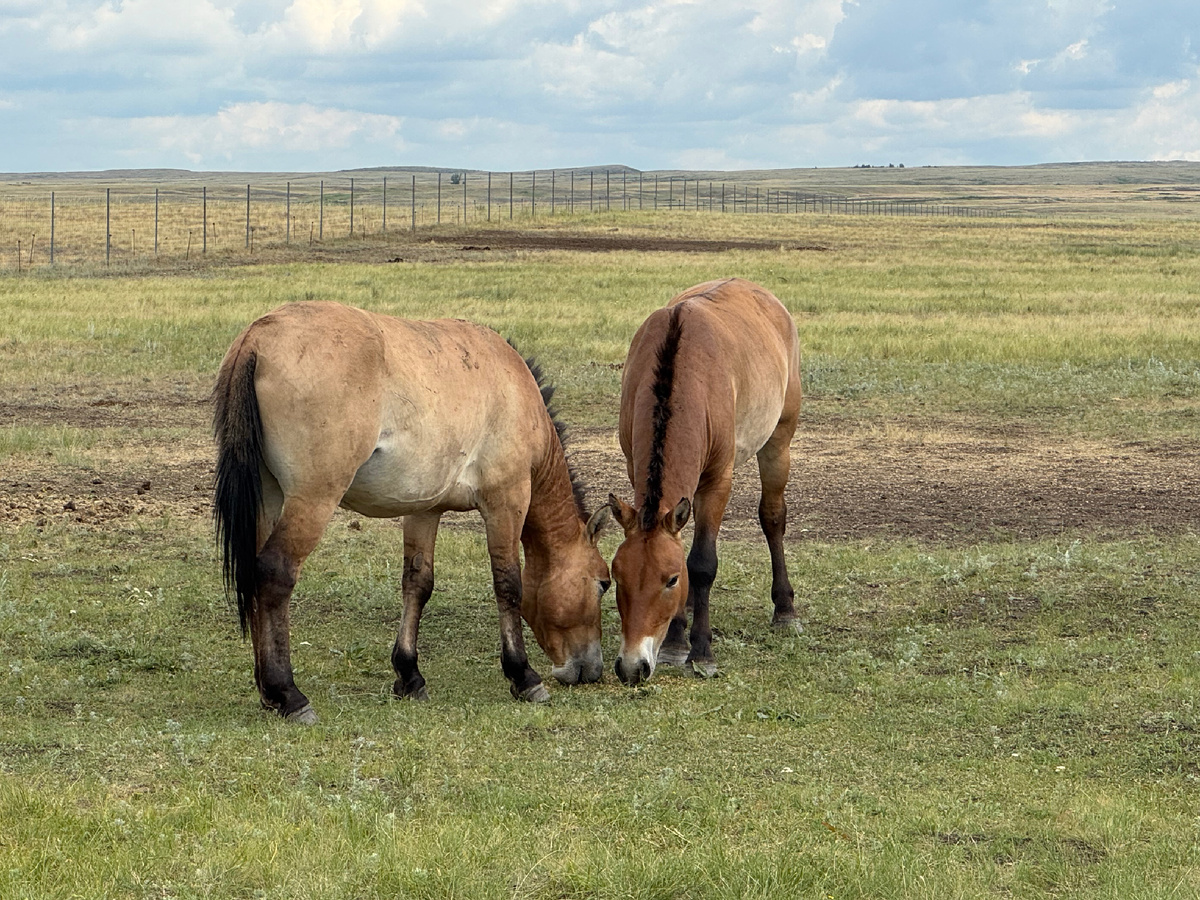 После города — степь. Нас привезли в Центр реинтродукции лошади Пржевальского. Это не зоопарк и не ферма, а заповедная территория, где возвращают к жизни дикий вид, который когда-то считался исчезнувшим. Сейчас здесь живут 110 лошадей.