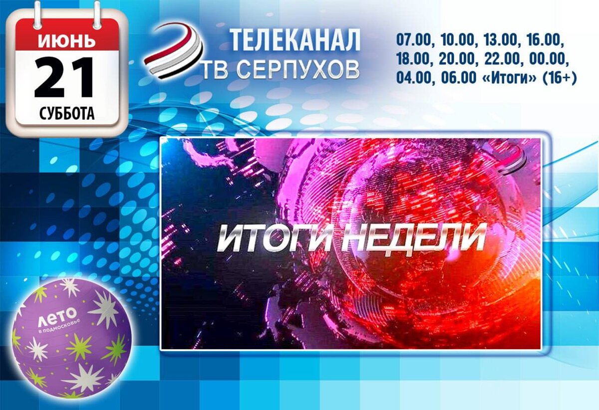 Что смотреть в субботу на нашем телеканале? Мы вам подскажем ⤵️ 07.00, 10.00, 13.00, 16.00, 18.00, 20.00, 22.00, 00.00, 04.00, 06.00 «Итоги» (16+) 06.35, 08.40, 17.25 м/ф «Мультфильмы» (6+) 07.30, 17.40, 18.30, 05.30 д/ф «Молодая наука» (12+) 07.55 д/ф «Территория жизни» (12+) 08.50, 10.30, 18.50, 20.30 х/ф «Слушать в отсеках» (12+) 11.35, 13.30, 23.45, 00.30 т/с «Спутники» (12+) 15.25, 16.30, 03.35, 04.30 х/ф «Опасный возраст» (12+) 21.40, 22.30 д/ф «Уроки Нюрнберга» (12+) 23.00 д/ф «Хранители жизни» (12+)