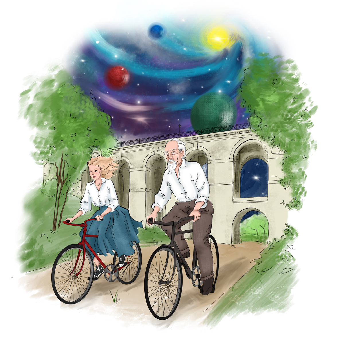 — Да! Представляете, мой домик часто в половодье подтапливало, поэтому пришлось достроить второй этаж и чердак, кстати, родные в шутку называли чердак «дверью в мировое пространство». А прежде, чем попасть в «Космос», конечно, можно пройти и гостиную, и кухню, и комнаты детей. Я всегда жил на втором этаже. Света не было, поэтому пришлось натянуть нить вдоль стола, навесить масляную лампадку и перемещать её в нужную точку. Рядом с комнатой вход в мастерскую – здесь и мой велосипед, здесь и станок для изготовления мехов дирижаблей.