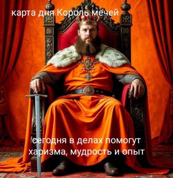 Карта дня Король мечей Это день принятия важных решений. Для кого-то, это сложный и напряжённый день, кому решения даются не легко. А кто-то в такие дни чувствует себя, как рыба в воде Вам может понадобится умение размышлять, быстро принимать решения и сразу действовать. Кто-то возможно в такой день встретит человека мудрого, который станет его наставником и хорошим другом.