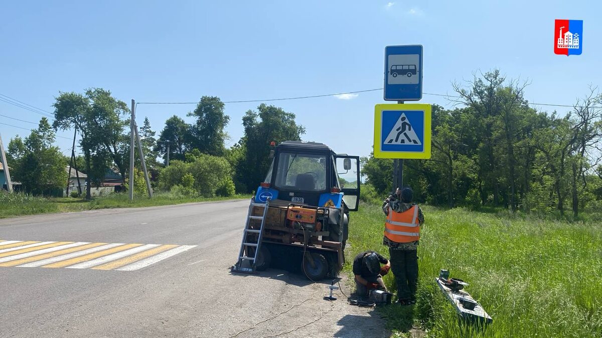 👍Специалисты «Городского центра благоустройства» проводят работы по замене дорожных знаков в Спасске-Дальнем