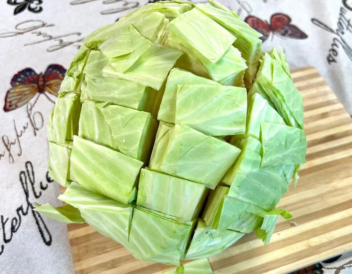 Вот взять эту самую капусту … Кочан … Берите крепкий, упругий … как Тося … моя голубо-палевая скромница с больным сердцем … когда решается отвоевать игрушку у Няки … Редко … но метко! Как жизнь – редко балует, но если уж награждает, то по полной … Делаете надрезы крест-накрест, глубоко … но не до конца… Как будто шьете карманы … А в эти карманы – сокровища! Кусочки бекона жирненького, колбаски копченой… идеально Чоризо ... ее пряный дымок – как характер Няки … невозможно игнорировать… если нет чоризо – бекон вытянет … солим, перчим … сверху – еще бекон шапочкой … Чтобы жирок … как заботливый дедушка … пропитал все нутро … Теперь главное – упаковка … Бумагу пекарскую смазать маслом хорошенько … Завернуть в нее кочан, как драгоценность… потом фольга … туго … чтоб пар не сбежал раньше времени … и в духовку … На 180°… Время? А вот это … как с Тосиным сердцем … Индивидуально! Главный индикатор – деревянная шпажка … Должна входить с легким усилием, но не проваливаться! Я люблю, когда аль денте … с хрустинкой едва уловимой … Как характер у Чернушки … Есть – так есть … а не размазывать по тарелке …