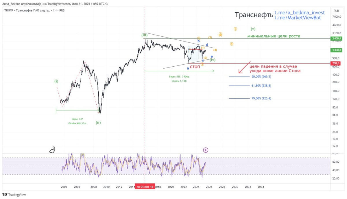 Также с низов 2022 есть возможность разметки заходного. В случае разворота бумаги волна (iv) в этом случае уже могла завершиться в сентябре 2022 и бумага уже находится в развитии пятой волны (v)