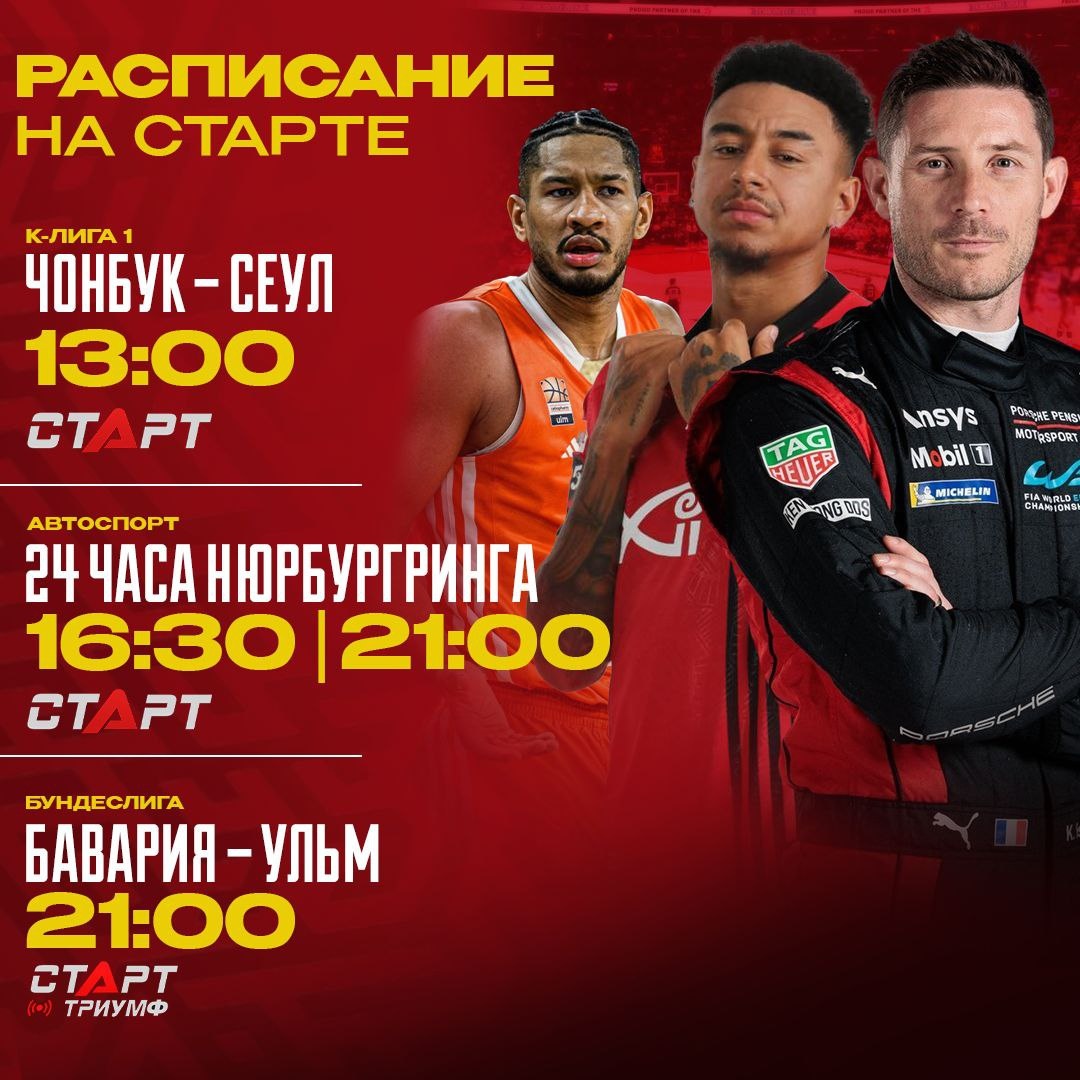 Сначала посмотрим на центральный матч 20 тура К-Лиги 1 – «Чонбук» Пойета против «Сеула» Лингарда. Затем нас ждёт старт культовой гонки, «24 часа Нюрбургринга». Ну и вечерний баскетбольный десерт в виде финальной серии Бундеслиги. «Бавария» или «Ульм», кто сегодня выйдет вперёд?