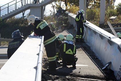 В России на трассу рухнул пешеходный мост