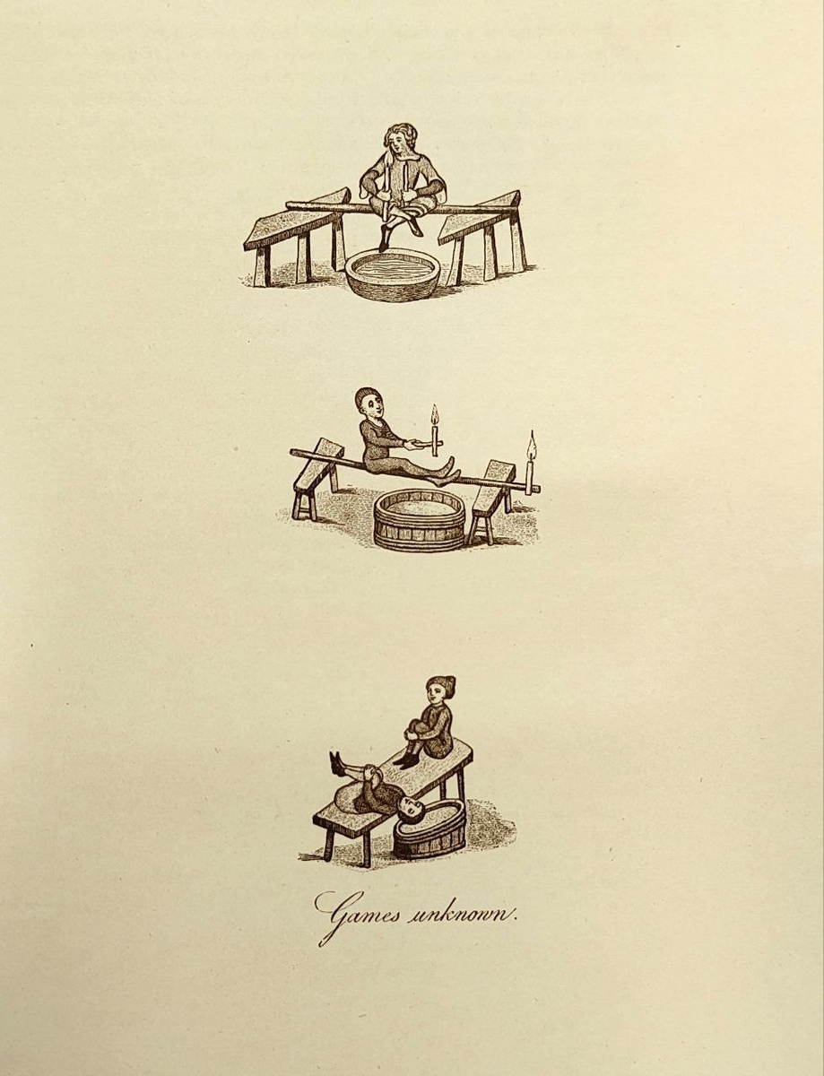 Старинные игры В книге о спорте и развлечениях «The Sports and Pastimes of the People of England» Джозефа Стратта (London, 1903.) представлены гравюры XIV века из коллекции манускриптов Бодлианской библиотеки с изображением играющих детей. У этих игр нет названий и четких правил (иллюстрации так и подписаны - «неизвестные игры»). Попробуйте догадаться, в чём заключалась суть этих игр? 😀
