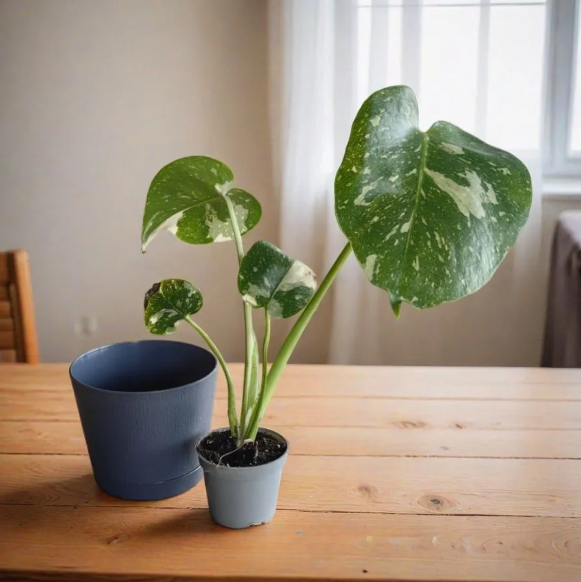 Вот как-то так случайно произошло, совершенно нехотя))) Я искренне думала, что закрыла монстерный вопрос тремя вариантами - обычной зеленой, Альбой и Адансона. Вроде бы все представители есть, остальные на них похожи, больше и не надо)) Но пока я искала ктенанту или калатею для цветочной композиции, а совместных закупках появилась и калатея и Тайское Созвездие по более-менее нормальной цене. Правда, в следующих закупках она еще подешевела на 300р, но я стараюсь не расстраиваться от этого))))) Тайка приехала в горшочке 6см, то есть надо пересаживать малышку. Горшок взяла 400мл, прямо большой для нее. Но надеюсь, корни растут быстро у монстер и все с ней будет хорошо. Корешки у нее прекрасные, я ее пересадила просто перевалкой, там трудно было бы очистить от старого грунта. И вот красотка уже в новом горшочке. Грунт с кучей разрыхлителей, вода застаиваться не будет. Правда за эти несколько дней, как она приехала, один лист у нее уже был подпорчен, а вот на парочке следующих появились пя