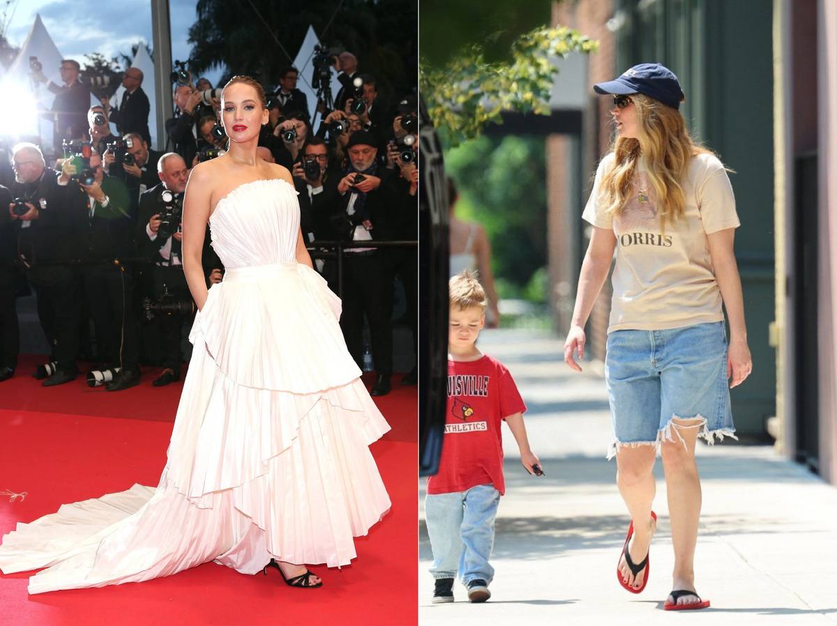 Перед тем, как предстать перед публикой на красной дорожке, знаменитости посвящают немало времени подготовке своего образа, включая одежду и макияж, прибегая к услугам стилистов, визажистов и других экспертов в области моды и красоты. После этого снимки распространяются в СМИ и интернете, и мы привыкаем видеть звезд в их наилучшем виде. Но знаменитости – это обычные люди, и многие из них, как и все остальные, ходят по магазинам и посещают другие общественные места. Нет ничего плохого в том, что они могут появиться без макияжа, но их одежда сразу привлекает внимание и позволяет оценить, обладают ли они природным чувством стиля. Представляю вашему вниманию подборку из десяти известных персон, запечатленных папарацци на улицах и на красной дорожке. Кто из них демонстрирует отсутствие вкуса и стиля, а кто выглядит безупречно не только на официальных мероприятиях, но и в повседневной жизни? Дженнифер Лоуренс На фотографии справа сложно узнать звезду "Голодных игр", роль, принесшую ей мирову