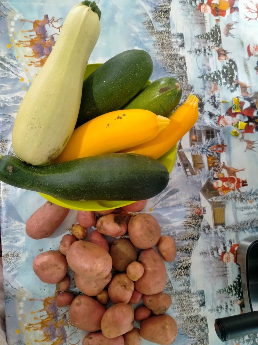 Второй заход кабачков и первая картошка
