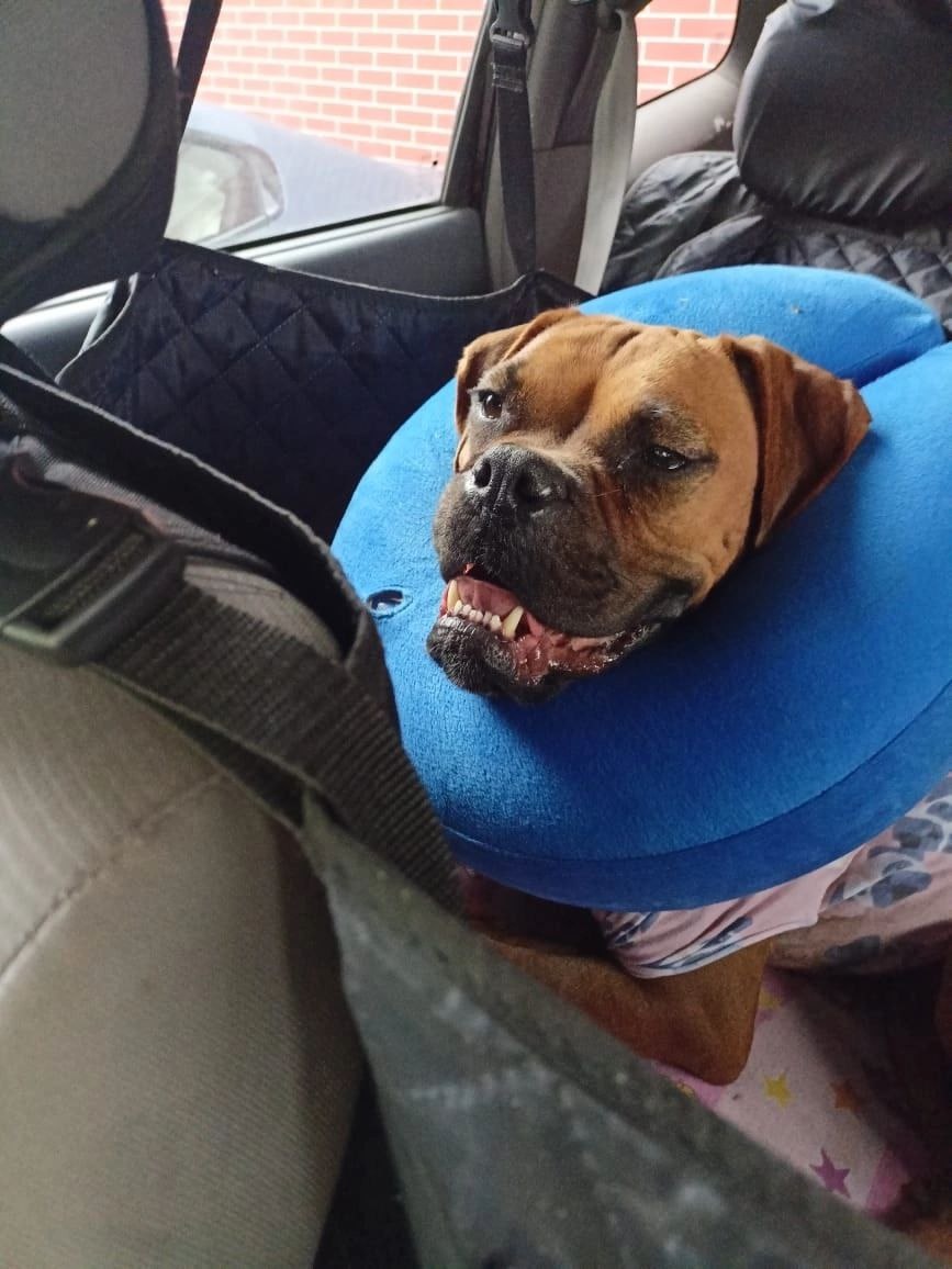 Бертиль, наша храбрая девочка, уже после операции! Все прошло гладко, без каких-либо неожиданностей. Теперь Бертилька на вид как милое, уютное лоскутное одеяло ручной работы: огромные швы вдоль и поперек всей собаки. Сейчас Бертиль в окружении заботы и внимания няни Лены , их обеих ждет непростой, но такой важный этап восстановления. Мы все скрестили пальцы и верим, что в тандеме с Леной она обязательно справится со всеми трудностями!