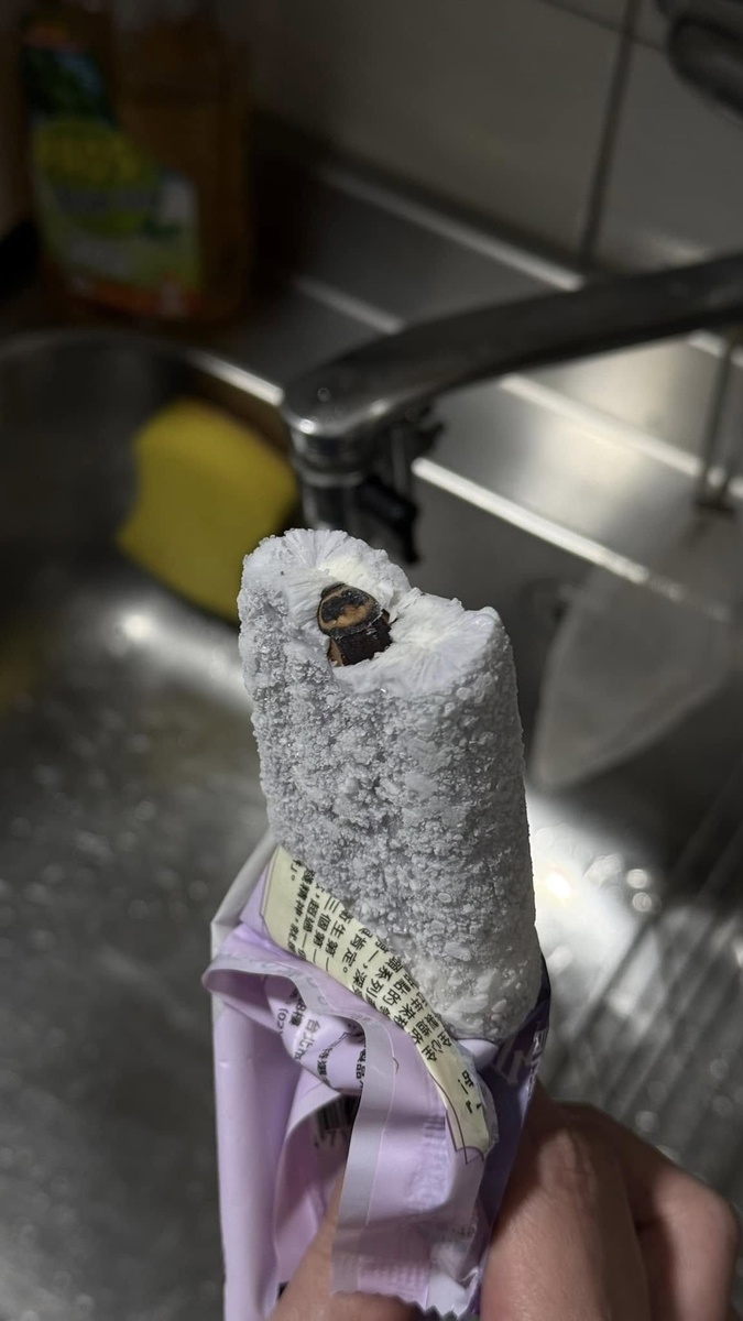 Пара из тайваньского города Цзилун купила таро-мороженое. В лифте, по дороге домой, они начали его есть — и заметили что-то тёмное в толще льда. Присмотрелись: это была голова таракана.