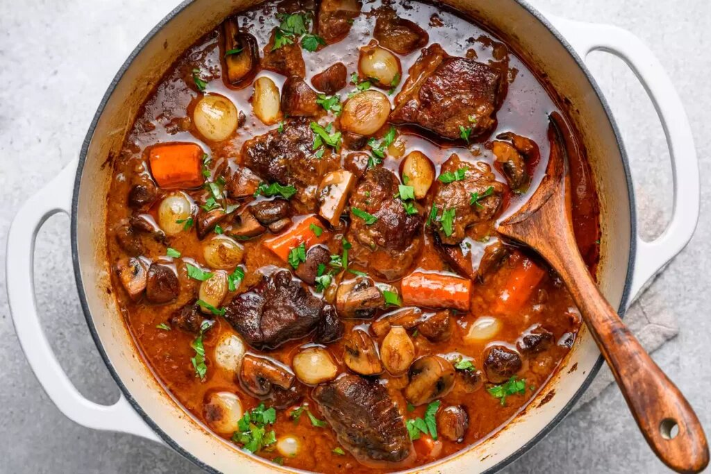 Родилось в Бургундии, где виноделы использовали красное вино для приготовления жёсткого мяса. Лайфхак: используйте бургундское вино — именно оно придаёт тот самый аутентичный вкус. 2. Настоящий беф бургиньон готовится из определённой части говядины