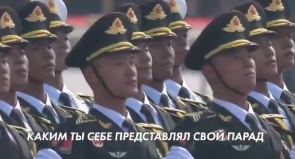 Пока китайские солдаты маршируют в идеальной синхронности, на экране появляется надпись на русском: «Как Трамп представлял себе парад» (по словам журналистки Джули Лофф). Когда кадры сменяются на парад Трампа, текст меняется на: «Что он увидел на самом деле».