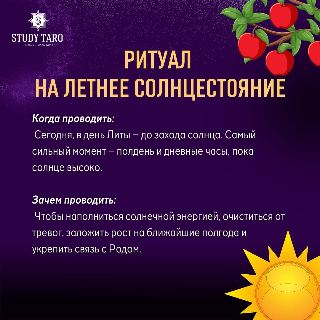 ☀️ Ритуал на Литу. Сделайте его сегодня! Это самый длинный день в году. Пик солнечной силы. С древности наши предки знали: именно в этот день можно заложить рост, обновление и благополучие на весь следующий цикл — до зимнего солнцестояния. Даже если вы не видите солнца за облаками, оно всё равно здесь. И его энергия сегодня особенно мощная. С утра постойте у открытого окна. Впустите свет. Поблагодарите за то, что уже есть. И — настройтесь на главное. Сегодня стоит провести особую практику — ритуал на силу Солнца и силу Рода. Он несложный, но очень сильный. Вам понадобится: * Восковая свеча, напитанная солнечным светом * Немного тишины * И ваше искреннее намерение Полную инструкцию вы найдёте выше, в карточках-картинках — проведите этот ритуал до заката, пока солнечная энергия в силе. И главное — поблагодарите. Солнце, Огонь, Род, себя. Сделайте что-то хорошее: посадите растение, покормите птиц, передайте добро дальше. Это и будет вашим "да будет так". Напишите, будете делать рит