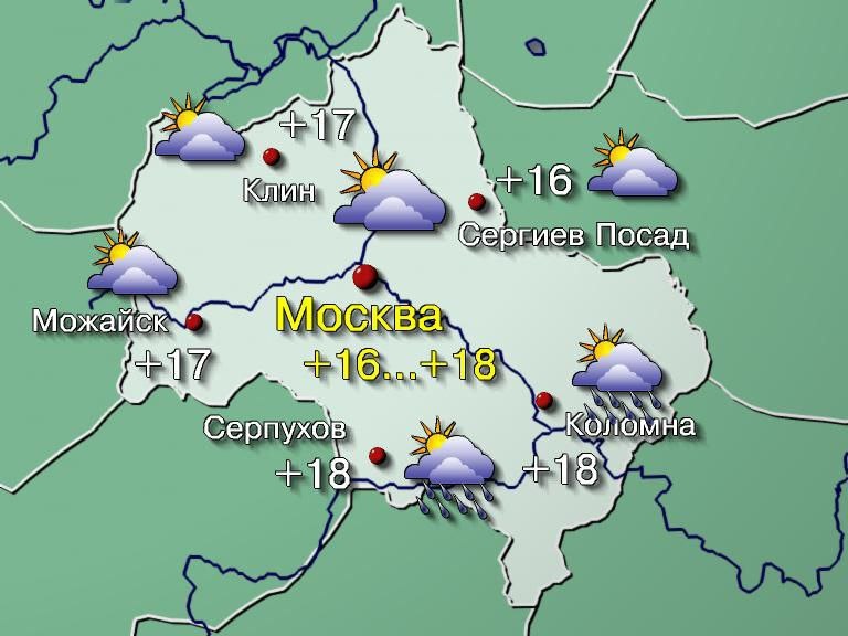 Сегодня в формирование условия погоды в столичном регионе будет вмешиваться гребень антициклона с запада. Он поспособствует появлению в облаках прояснений и прекратит дожди. Однако несмотря на появляющееся в разрывах облаков солнце, теплее не станет – дневная температура останется на 5-6° ниже климатической нормы.