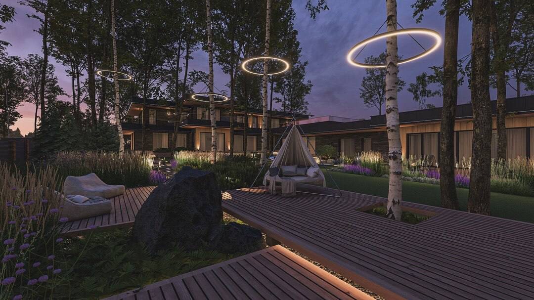 Когда сад зажигает OG-свет ✨ Наш свежий проект — 33 сотки в стиле современный природный минимализм. Свайпайте карусель и смотрите, как каждый приём меняет атмосферу: 1. Лес из сияющих колец — алюминиевые Halo-rings на стропах между берёзами. Видишь свет, но не лампу. 2. Потайная подсветка террасы — LED-лента в пазе декинга подчёркивает геометрию, не слепит глаз. 3. Путь безопасности — низкие bollard-столбики 2700 K ведут к входу мягким ковром света. 4. Светящейся камень-скульптор — IP65 Garden Rock: днём белый галечник, ночью жаркий акцент. 5. Узкие споты под кронами — корявый ствол + колонна света = три метра живой инсталляции. 6. Фасадная нитка — контурная линия на карнизе рисует архитектуру даже издалека. Все приборы сведены в один сценарий ZigBee / Wi-Fi/KNX: «Гости», «Ночной», «Вечеринка» — один тап. Сохрани идею, чтобы показать подрядчику, как должно выглядеть грамотное слоистое освещение 👇 #садовыйсвет #вечернийсад #ландшафтныйдизайн #умныйсад #greenland_design
