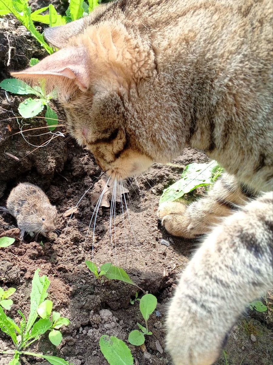 Утро началось не с кофе... Мой охотничек принес мышь. Это уже третья за сезон, еще был крот. А вчера, вернувшись с работы, обнаружила на втором этаже(мы там спим) дрозда, он поймал и принес мне поделиться😄