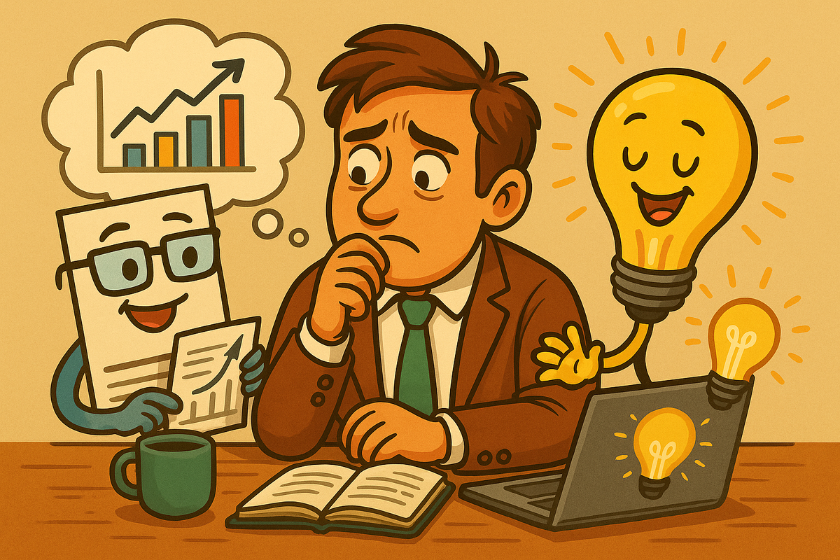 Когда чуйка против логики: как не сойти с ума и принять решение Два стула: один — с табличкой Excel, другой — со словом «ощущаю» Представь типичную ситуацию: ты стоишь на развилке. В одной руке — экономическая модель с тремя сценариями и формулой EBITDA. В другой — ощущение, что "что-то не так".