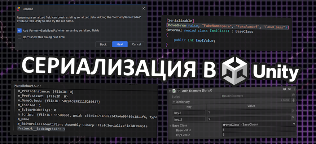 Также существуют сторонние сериализаторы и плагины, которые позволяют расширять стандартные возможности Unity. Это Odin и прочие аналоги, про которые я ранее писал в своём блоге.