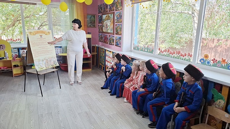 Так, казаки юртового казачьего общества Митякинского юрта во главе с атаманом Василием Пруцаковым внесли вклад в развитие культурного наследия и подарили воспитанникам казачьего детского сада «Колобок» учебные материалы и символику, призванные передать традиционные ценности донских казаков будущим поколениям. В качестве презента ребята получили красочные плакаты «Казачьи заповеди» и «Воспитание казака и казачки», а также специальную детскую книжку «География земель Всевеликого войска Донского». Чтобы создать атмосферу единения и уважения к своему народу, в комплект вошли яркие флаги Всевеликого войска Донского. Получив учебные материалы, воспитатели незамедлительно включили их в образовательный процесс. Уже на первом занятии малыши познакомились с понятиями чести, достоинства и мужества, столь ценимыми в культуре казаков. Они также рассказали ребятам о значении изображённых символов и обсудили правила поведения настоящих казаков. После познавательного занятия мальчишки и девчонки поигр