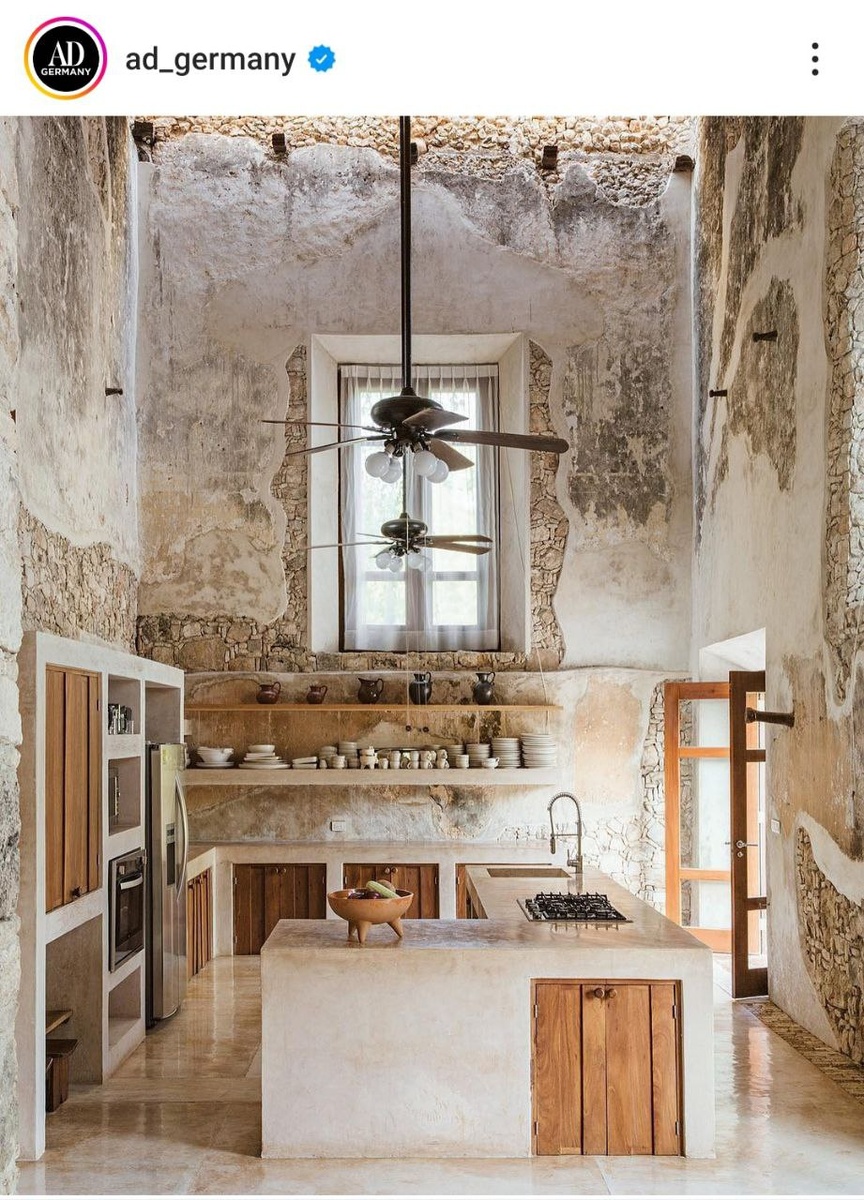 (и почему мне захотелось сделать анализ именно этого интерьера с журнала AD Germany) Это не просто интерьер — это будто сцена из прошлого, которую оставили как есть… только вписали туда плиту и кран. 🎨 Цвет и дыхание стен