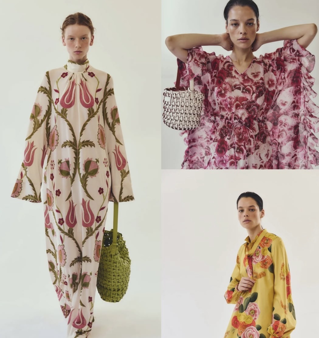 Коллекция Лето-2025 с принтами и аппликациями цветов у Gambatista Valli. Что мне показалось новым и интересным. Кутюрье смело заимствует у картин эпохи Возрождения не только знаменитые орнаменты, но и аксессуары. Шапочка пажа, похожая на шапку современного монаха, заново вернулась на подиум. Кстати, в эпоху Возрождения, шапок мужских мы можем найти огромное количество вариаций, которые могут и сегодня стать аксессуаром у модниц! Стоит лишь полистать работы Сандро Ботичелли и его современников. А орнаменты? Их уже несколько лет цитируют кутюрье разных стран! Не всем она пойдет , хотя и зрительно удлиняет фигуру. Мне показалось важным, что Валли столько лет отдает предпочтение вариациям одного и того же цветка в принтах и в вышивке. В этот раз его фаворитом стала фиалка. Кстати, в англоязычных странах фиалка -violet- имеет большое отличие от анютиных глазок-pansy. У Валли это ближе к анютиным глазкам. Гирлянды цветов обрамляют фигуру, весьма деликатно подчеркивая изгибы