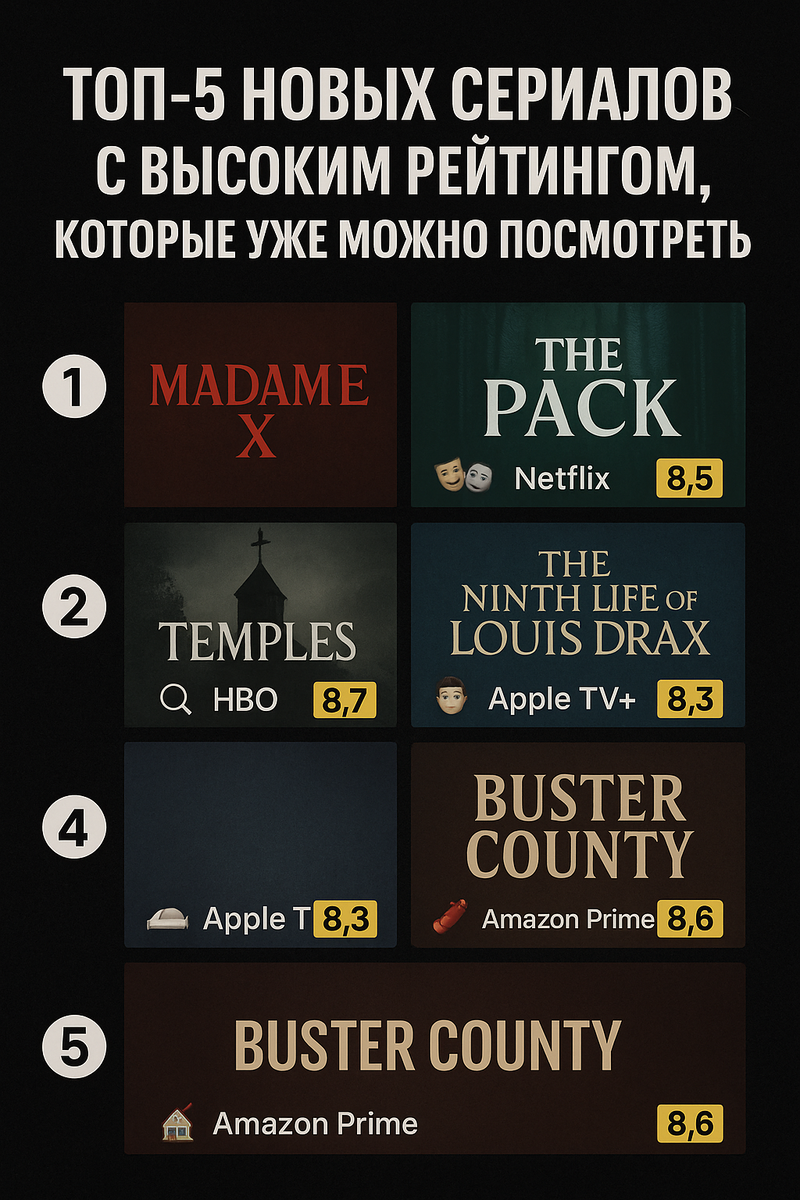 📺 Топ-5 новых сериалов с высоким рейтингом, которые уже можно посмотреть в хорошем качестве