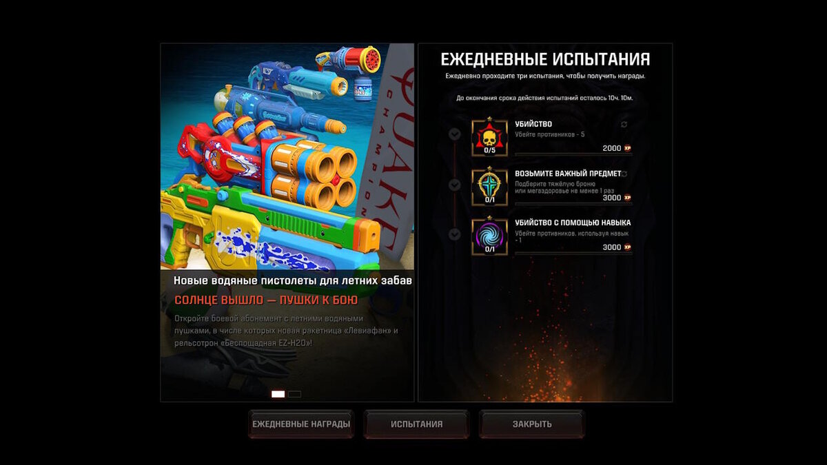 27 сезон стартовал в Quake Champions. Крупный патч на 1.7 гигабайт принес в игру четыре новых скина. Два из них, ракетница "Левиафан" и рельсотрон "Беспощадная EZ-H20 RG", стилизованы под водяное игрушечное оружие. Два других, Blaster NG и BFG-10K RL, пришли из Quake 2 и 3 соответственно. Они доступны для покупки за игровую валюту. Важнейшими изменениями этого обновления стало увеличение частоты кадров на серверах с 60 до 100. Однако частота клиентов уменьшена до 500 кадров в секунду. Проблемы долгого подключения и потери соединения тоже исправили. Они были связаны с защитой и проверкой активов игры. Масса изменений затронула характеристики чемпионов и режимов. У оружия всего два важных изменения. Урон дробовика увеличен на 10 единиц на близком расстоянии до 3 метров. Молниемёт теперь имеет урон в 6 единиц, вместо 7. Боевой пропуск и испытания обновлены. В платной версии боевого пропуск много старых скинов на оружие, стилизованных под водяное оружие. Стоит заметить, что это второе обно