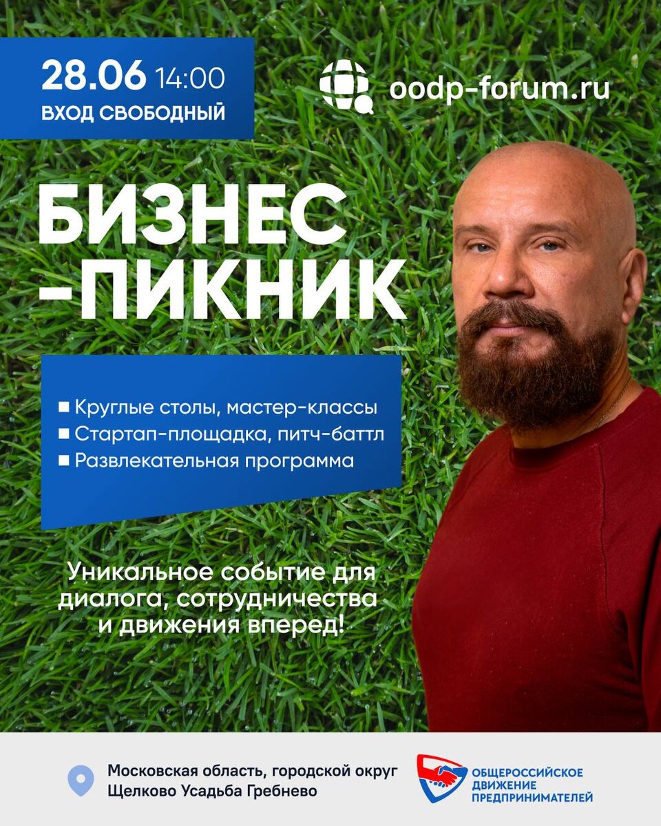 Общероссийское движение предпринимателей приглашает 28 июня в усадьбу Гребнево на бизнес-пикник, который объединит деловую программу с полноценным активным отдыхом, вкусной едой и развлечениями!