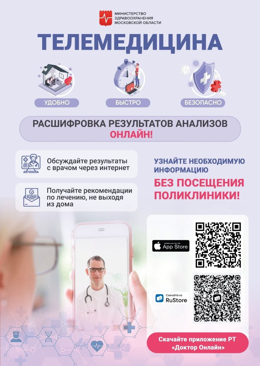 Телемедицина — это онлайн-общение с врачом через видео, телефон или чат. Особенно удобно, когда нет возможности приехать на очную повторную консультацию.