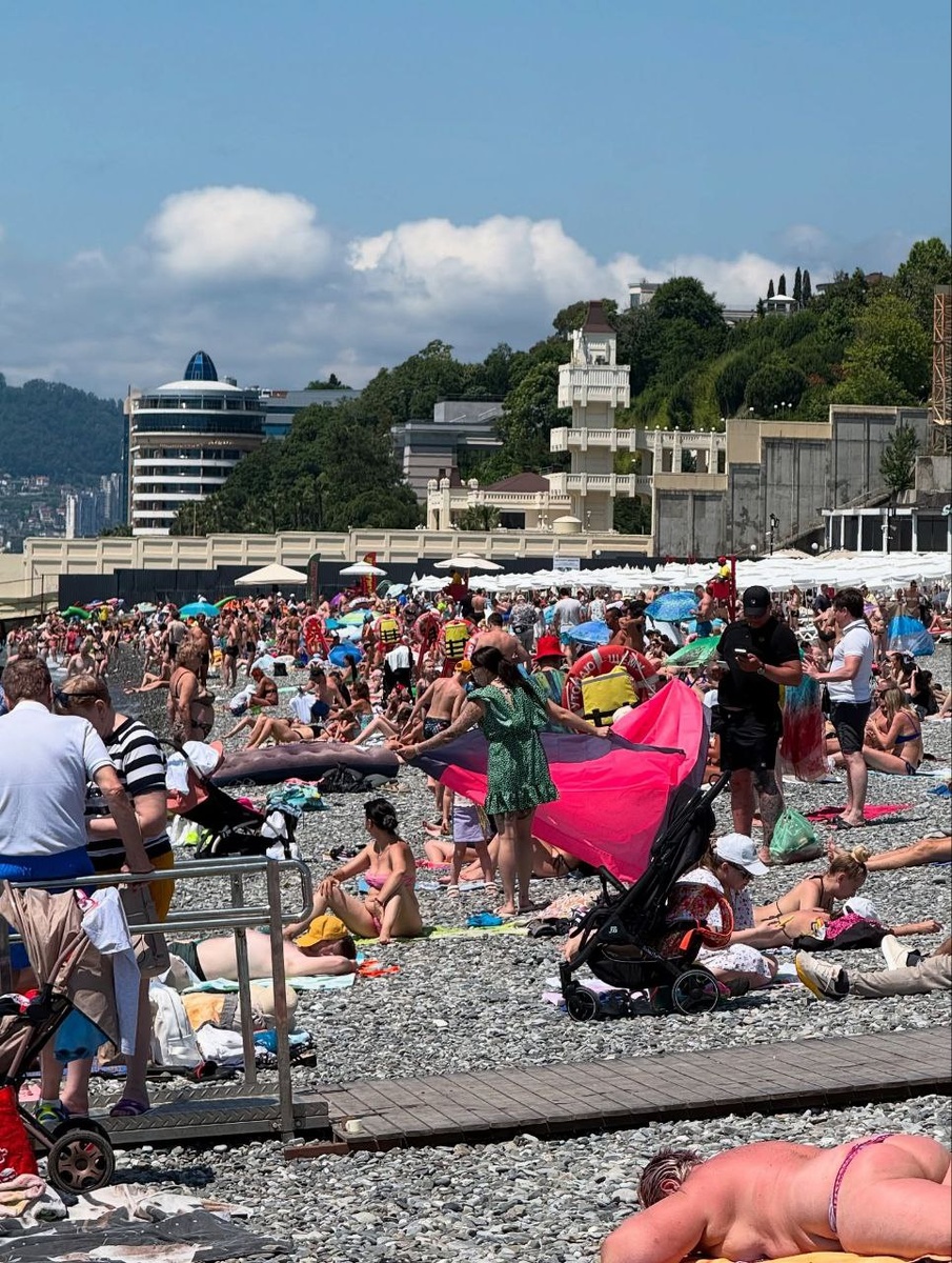 🏖️🌊 В целом людей достаточно Пляж в Сочи заполнен процентов на 70 Вооон там кусочек остался, нас только ждут 😜🕺 🗺 Сочи, пляж Ривьера 📷 sochi_online ⛏ Юг Край