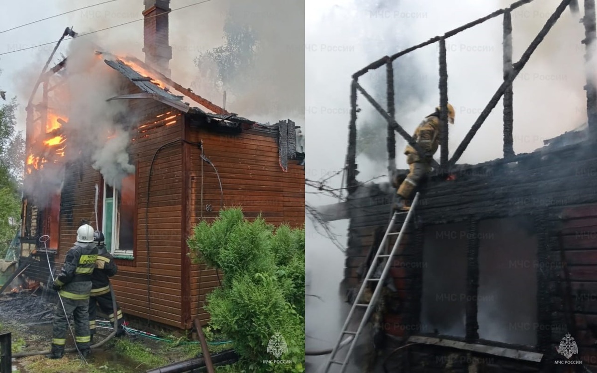 Загорелся дачный дом в СНТ «Детчинская поляна» деревни Суходрев. Спасти здание не удалось, огонь уничтожил его практически полностью.