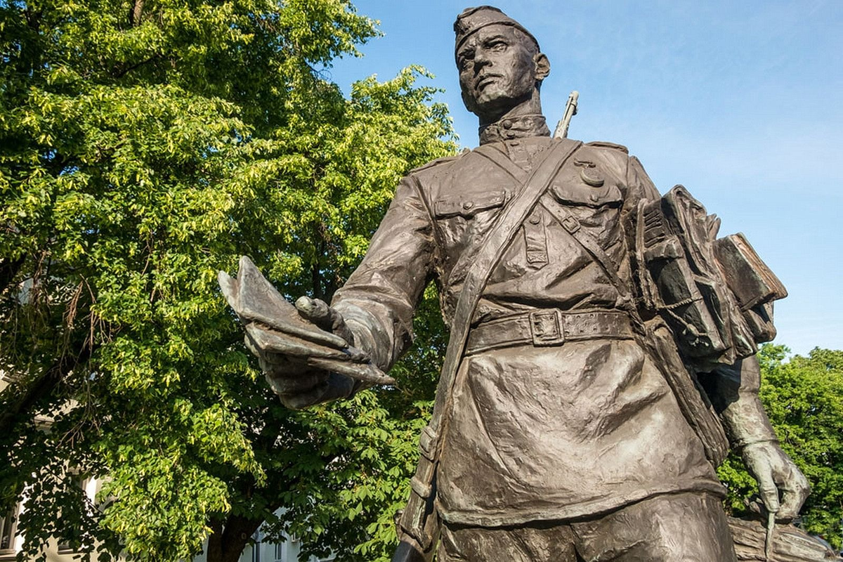 Памятник фронтовому почтальону, созданный скульптором Алексеем Игнатовым и архитектором Денисом Бобылевым, был воздвигнут в Воронеже в 2015 году. В Воронеже у здания главпочтамта установлен единственный в мире памятник фронтовому почтальону. Бронзовый солдат с винтовкой за плечом шагает к своим адресатам. Левой рукой он придерживает пухлую сумку, в правой — заветные треугольники. Прототипом для создания памятника послужил ефрейтор Иван Леонтьев, экспедитор-почтальон, который под огнем фашистских войск доставлял почту на Воронежский фронт. В мае 1943 года Иван был награжден медалью "За боевые заслуги". "Во время боев, рискуя своей жизнью, доставлял корреспонденцию на передовые позиции, — говорится в представлении. — Во время боя за станцию Балаклея был обстрелян немецкими автоматчиками, несмотря на это, принес на передовую бойцам и командирам почту. За проявленную смелость и мужество товарищ Леонтьев вполне достоин награждения". На почте На окнах – грязь, наплывы льда И кипы Серых