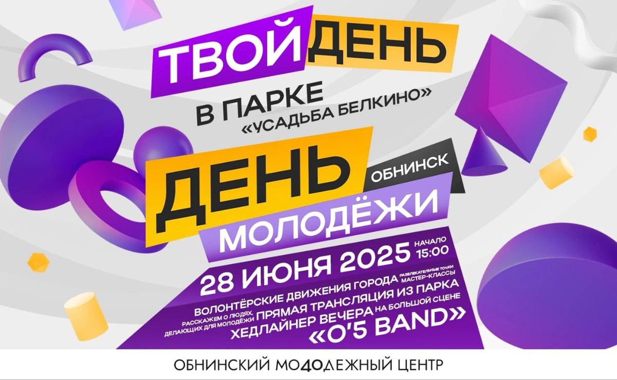 Нас ждёт грандиозный праздник! Друзья, пора готовиться к большому событию! 28 июня у нас пройдёт масштабное городское мероприятие. Оно будет посвящено сразу трём датам: 80-летию атомной промышленности, Дню мирного использования ядерной энергии и Дню молодежи. Праздник начнётся в 15:00. Всех ждёт интерактивная программа от Обнинского молодежного центра. Это – мастер-классы по управлению дронами, научные квесты, «атомные» станции от волонтеров и вечерний джаз от коллектива «O'5 band». В парке вас будут ждать тематические площадки «Атомный движ», выставка «Обнинск — первый наукоград России» и концертная программа «Энергия атома». Завершит праздник выступление группы «Моральный кодекс», организованное при поддержке проекта «Территория культуры Росатома». 👍 Подписаться | Прислать мероприятие