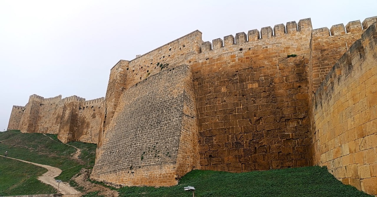 🗿Нарын-Кала Дербент Ей возраст более 1500 лет, заложили в VI веке по приказу правителя Хосрова I из династии Сасанидов. В переводе со среднеперсидского название означает «солнечная крепость» Общая площадь крепости — около 4,5 гектара Длина — 255 метров, а высота стен варьируется от 20 до 25 метров. толщина некоторых участков до 3,5 метра На каждом участке стен через равные промежутки — примерно в 25 метров — размещались башни, служившие сторожевыми пунктами Координаты: 42°03′10″, 48°16′26″ #путешествияблондинки #дагестан