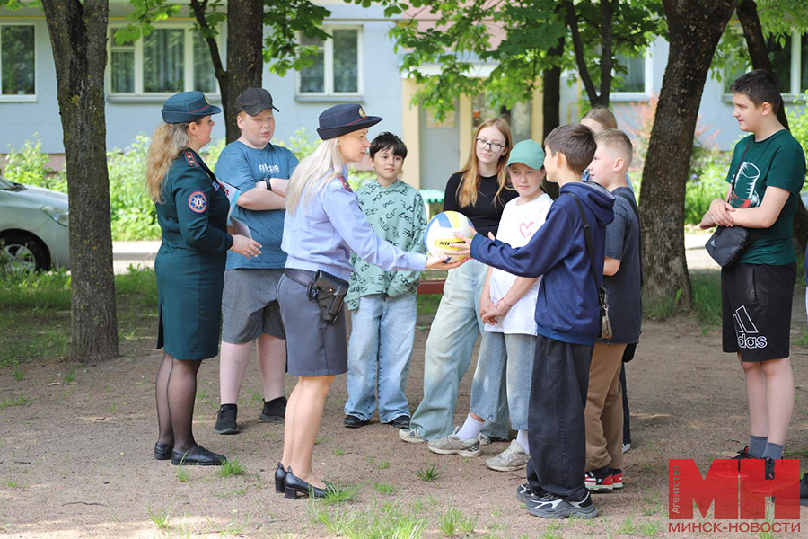 С целью сделать летние каникулы безопасными для детей, различные службы города проводят рейды. В одном из них вместе с сотрудниками РУВД, МЧС и ЖКХ Заводского района г. Минска побывал корреспондент агентства «Минск-Новости». Внушительных размеров детская площадка в окружении пятиэтажек на ул. Ангарской. Стандартный набор игрового оборудования: качели, скамейки, горки, лестницы и несколько тренажеров. Новых комплексов нет, но все в хорошем состоянии — покрашено и отремонтировано. Заметив людей в погонах, стайка ребятни собралась возле мобильной группы. Участковый инспектор по делам несовершеннолетних Заводского РУВД старший лейтенант милиции Марина Бондарь поинтересовалась у детей, как проходят летние каникулы. А потом напомнила об элементарных правилах безопасного поведения на дворовой площадке, а также на улице, в парках и других местах. Рассказала и об ответственности за правонарушения как для подростков, так и для родителей. Затем к общению подключился старший инспектор сектора проп