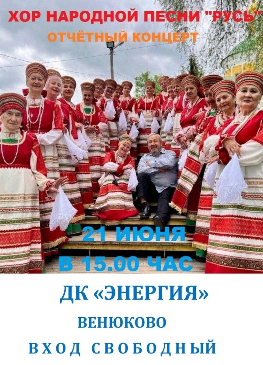 ✨ Сегодня в 15:00 можно в мкр-не Венюково попасть на концерт Хор народной песни "Русь" приглашает Вас на свой концерт 💗 🚫 Возраст: 0+ 📆 21.06.2025 🕛 15:00 🏢 ДК «Энергия» 📍 г.о. Чехов, ул. Гагарина, д.15 🪙 Вход свободный❗️ ⭐Разместить публикацию ⭐Поддержать канал голосом ✅ Мероприятия Чехов https://dzen.ru/id/66cc4b48e9ef144699238a51 http://vk.com/chekhov_events http://dzen.ru/chekhov_events