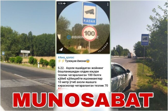 По результатам проведённой проверки выяснилось, что данный дорожный знак был установлен неизвестными лицами и не соответствует действующему скоростному режиму, установленному в Янгиюльском районе. В настоящий момент данный дорожный знак был демонтирован. Сотрудники органов внутренних дел проводят следственные мероприятия для установления лиц, причастных к данному инциденту.
