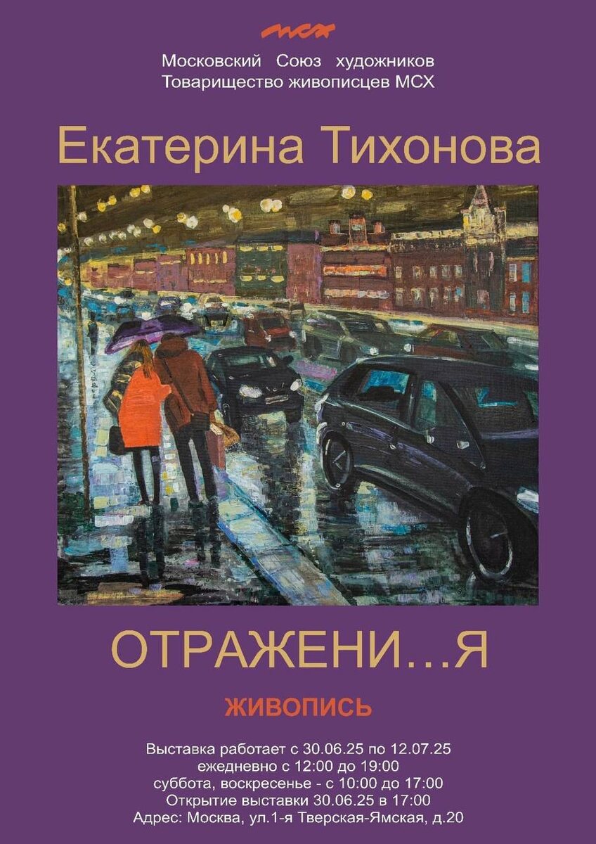 В ответ на пост Екатерина Тихонова «ОТРАЖЕНИ…Я» 30.06.2025 – 12.07.2025. Выставочный зал Товарищества живописцев МСХ представляет персональную выставку работ члена Московского союза художников, заслуженного педагога, художника Екатерины Тихоновой. В экспозиции представлено около 60 произведений живописи, а также декоративные панно, выполненные в технике батика. Режим работы: пн. – пт. с 10.00 до 19.00, сб. – вс. с 10.00 до 17.00. Адрес Выставочного зала: 1-я Тверская-Ямская, д. 20, проезд до ст. метро "Маяковская" или "Белорусская".