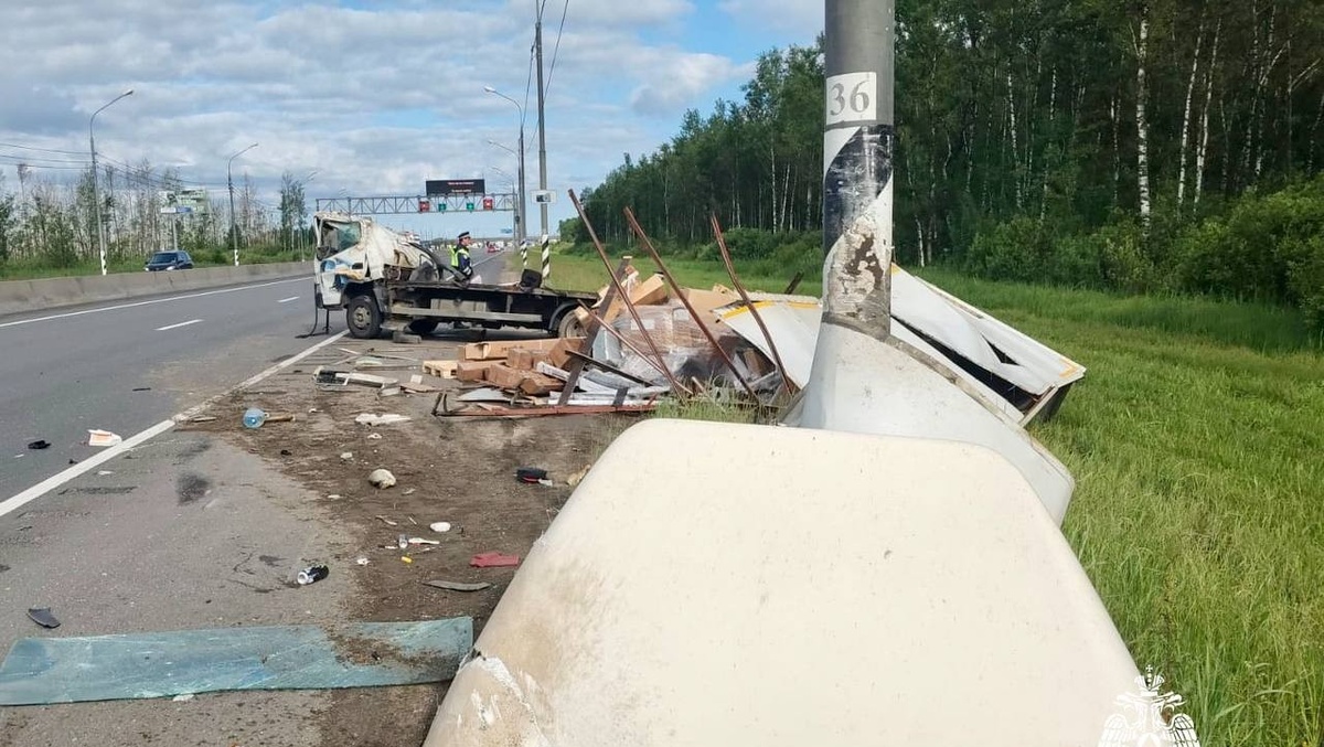 21 июня сотрудники МЧС ликвидировали последствия ДТП. Инцидент произошел на 167-м километре автодороги М-10 в Калининском округе. Судя по фото, грузовик, скорей всего, врезался в столб. Кабину авто расплющило. Несмотря на это, в ведомстве отметили, что водитель не пострадал.