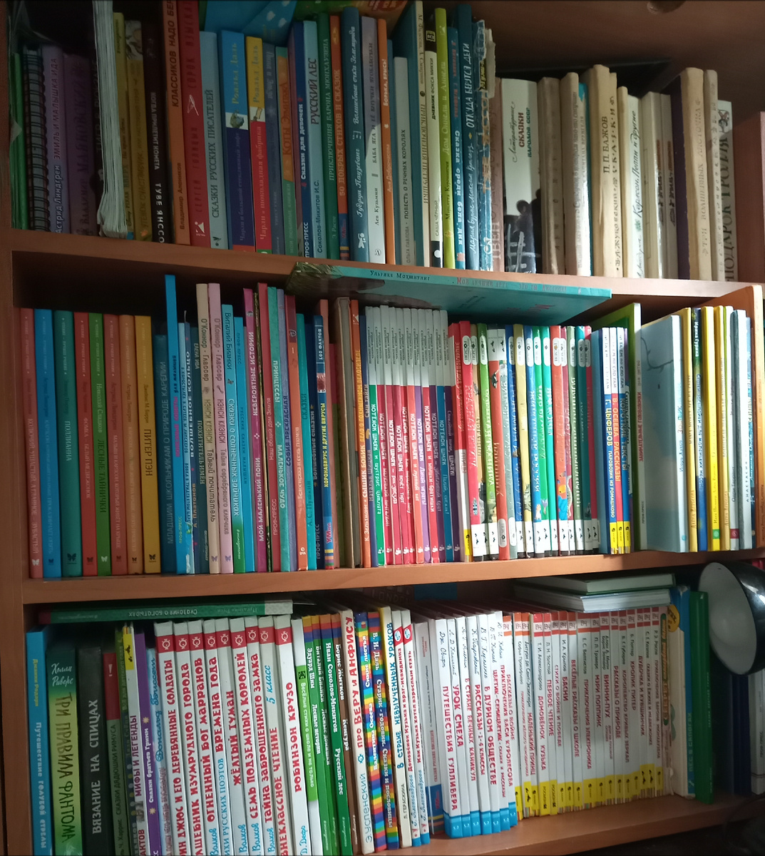 Мечта о собственной библиотеке жила во мне всегда. Когда появились дети, книг дома почти не было, но с их взрослением росла и наша коллекция. Детские книги, рассчитанные на дошкольный возраст, я уже почти все передала дальше, теперь мы собираем литературу, соответствующую возрасту детей. Полок катастрофически не хватает! Книги лежат в разных местах! Я даже в шутку говорю, что после двухсотой книги перестала вести счет. Да, я точное количество уже не помню! Потому что каждый месяц приобретаю книги. Дочь уже твердит что не пустит в дом😉, а сын предлагает купить штамп и пометитьвсе книги. Я очень хочу, чтобы мои дети развивали навыки чтения, научились понимать прочитанное. Так как у меня у самой есть проблемы. Бывает только после десятого раза , могу понять текст.. Поэтому я тщательно подбираю книги для сына и дочери, учитывая их разные интересы. У каждого своя коллекция энциклопедий по любимым темам. Также отдельно по школьной программе. Сейчас книги лежат буквально повсюду. И во