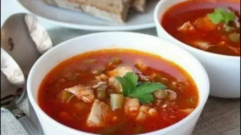 Суп с лечо с курицей - очень сытный и необыкновенно ароматный. Лечо придает блюду особенно насыщенный вкус и красивый цвет.