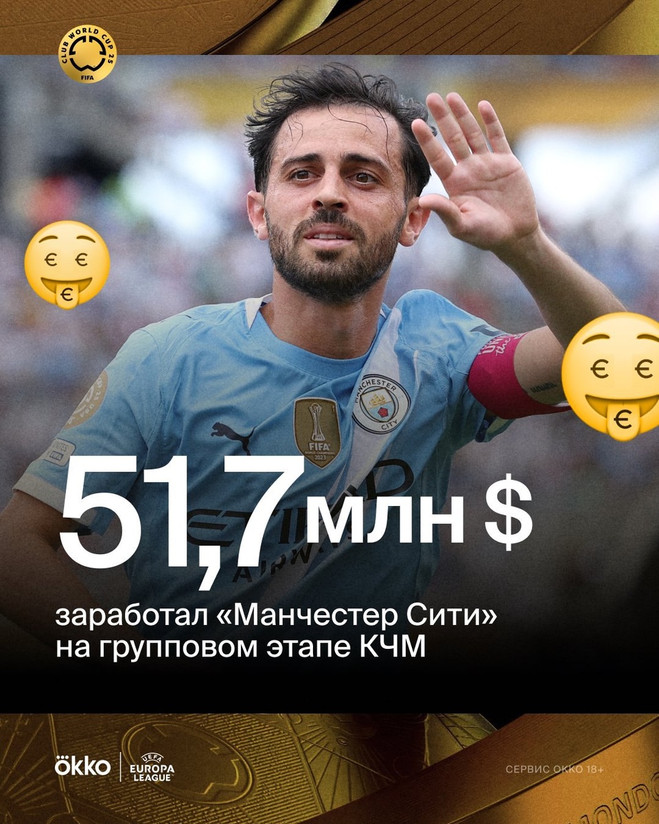 «Горожане» — первые по доходам среди всех клубов на КЧМ 💸 Как сообщает The Athletic, «Сити» заработал $ 51,7 млн за 3 матча группового этапа. Дальше идет «Реал» (48,4 млн) и «Бавария» (45,1 млн). Неплохо подзаработали 🤑