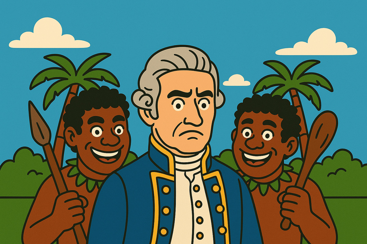 В XVIII веке Европа стремительно расширяла колонии. И любое столкновение с туземными культурами часто рассматривалось через призму страха и превосходства. Идея, что великий британец пал жертвой "дикой жестокости" и "каннибалов", усиливала образ чужого как варвара, опасного и непредсказуемого.