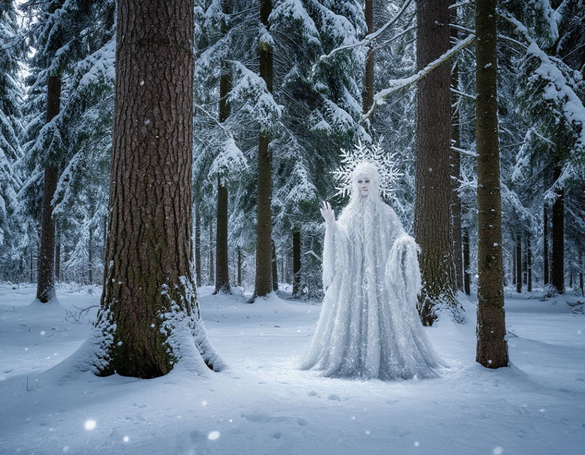 В самой глухой чаще зимнего леса, где вековые ели стоят, словно застывшие великаны в искрящихся снежных шубах, жила-была льдинка Снежинка. Это была не простая льдинка, а настоящий лесной дух, рождённый из первого снега, что опустился на землю в начале зимы.