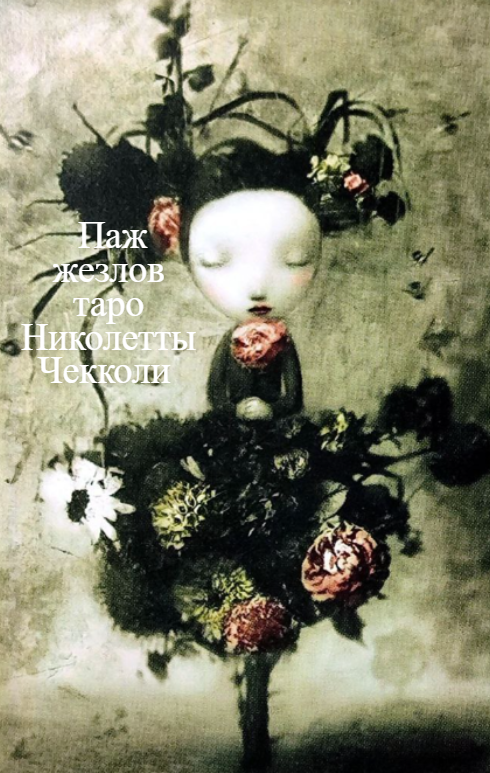 Путеводитель Здесь карта близка к классическому пажу Уэйта и олицетворяет Пажа Жезлов как носителя новостей и довольно молодого персонажа, чаще всего юношу в переходном возрасте к мужчине. Он стремится к развитию и познанию окружающего мира, в основном это молодой человек с хорошими задатками, хотя не до конца понятно, сможет ли он их реализовать на практике. Паж молод и поэтому всегда готов к активным действиям. В нём бурлит жизненная энергия и он с удовольствием берётся за всё новое и необычное, что может с его точки зрения способствовать личностному росту. Паж Жезлов у нас - девочка, растущая из дерева, кроной которого является букет из различных